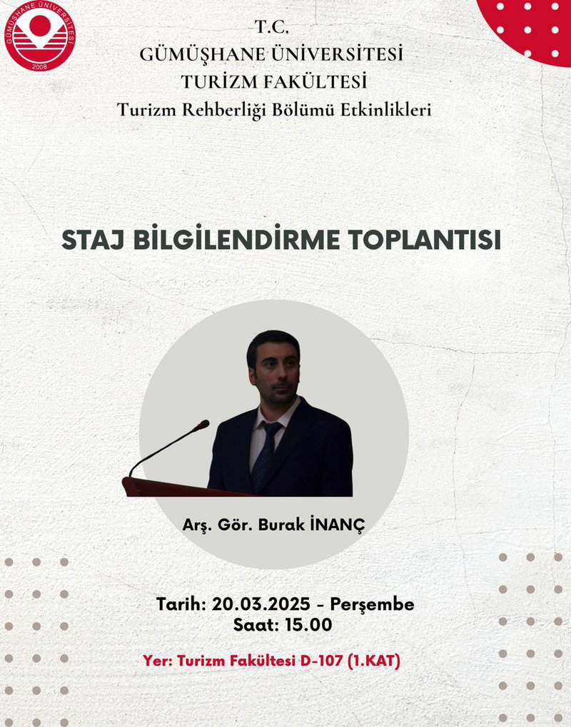 An internship information meeting will be held for students in the Tourism Guidance department.