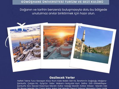 Our university's Tourism and Travel Club is organizing a trip to the provinces of Şanlıurfa and Mardin, located in the Southeastern Anatolia Region. Students from the Faculty of Tourism, as well as students from many other faculties, are expected to participate in the trip.