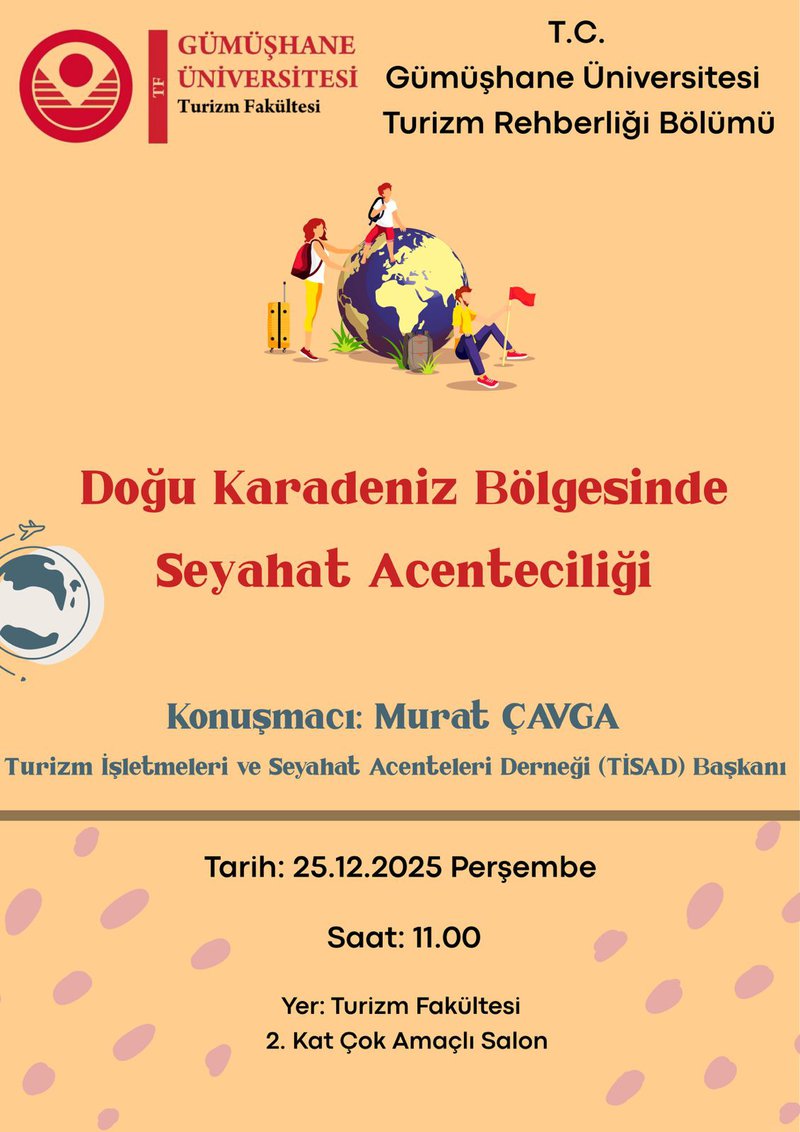Gümüşhane University Tourism Guidance Department will host Mr. Murat ÇAVGA, Chairman of the Board of Directors of the Tourism Businesses and Travel Agencies Association (TISAD), at its final event of 2025.