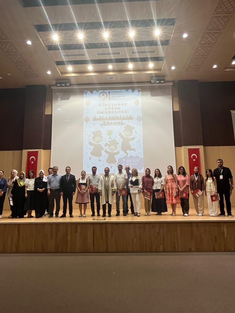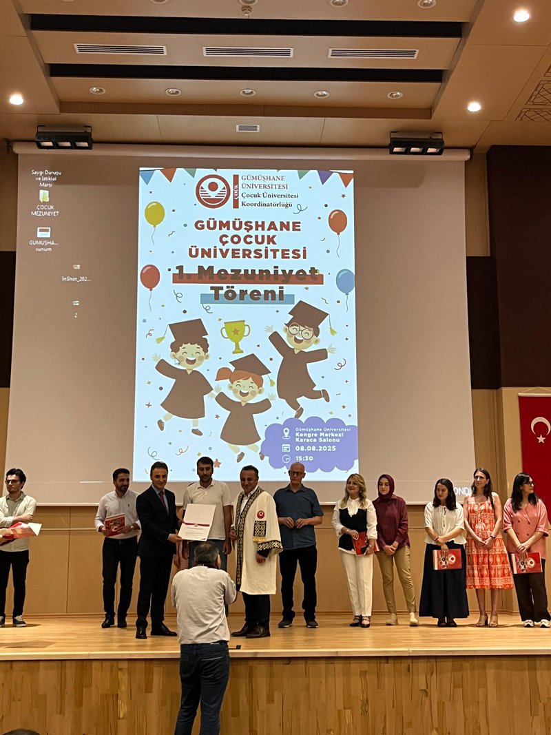 On August 8, 2025, the first graduation ceremony concluded with the presentation of certificates of appreciation and diplomas to all the teachers and children who conducted the workshops at Gümüşhane Children's University by Gümüşhane University Rector Prof. Dr. Oktay Yıldız, esteemed vice rectors, and other protocol members.