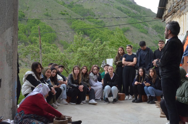 The Tourism Guidance Department of our faculty organized a practical field trip to the villages of Dölek and Sarıçiçek in our province. The technical trip, organized as part of the Anatolian Folk Culture and Handicrafts course included in the second-year curriculum, was supervised by Assoc. Prof. Dr. İsmail ÇALIK, the course instructor. The first stop on the technical trip, attended by our Tourism Guidance students, was Sarıçiçek Village, one of the central villages of our province. Located 43 km from Gümüşhane city center, Sarıçiçek Village offers a vibrant array of colors with the yellow highland flowers blooming in June. Another distinctive feature of Sarıçiçek Village is its wood-carved village rooms, where the village room culture is preserved. Completed by masters and apprentices over a period of approximately three years without seeing each other, these rooms, rich in motifs and decorations, stand out with their harmony of decoration, vibrant colors, and the use of the woodwork and decorations using the kundekari technique. The story of the village rooms is told below: