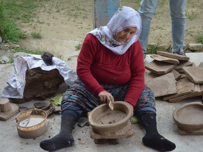 The stages of making dölek gudu are difficult and demanding. Bringing the soil to the village, making and sorting the clay, transforming it into gudu, drying, firing, and ziling all present a variety of challenges. The finest examples of wheelless pottery spread from Dölek Village to other regions in the past. For obvious reasons, new gudu masters are not being trained in Dölek Village. Our country's poor luck in the craft reveals its dark side here as well. The unique aspects of dölek gudu are that it is made by women and does not use a wheel. For years, only women have been transforming soil into gudu. After hearing information about this ancient Anatolian culture from our aunt Menşure Arı and our brother İlhan Çolak, we set off for Gümüşhane with our students.