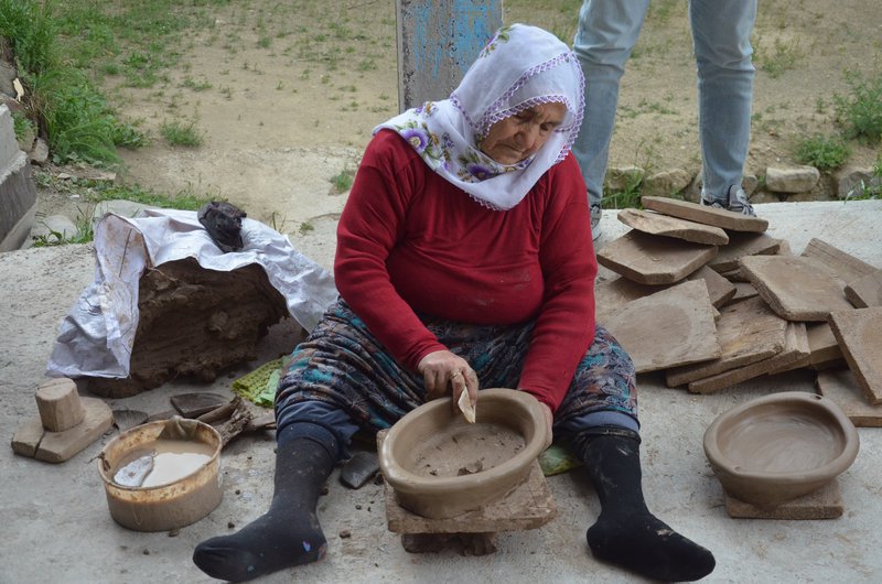 Our next stop after Sarıçiçek Village was Dölek Village, famous for its gudu (pottery). Located 35 km from Gümüşhane city center, Dölek Village lies within the central district. We were greeted in Dölek by our former village headman, İlhan Çolak. Throughout history, gudu (pottery making) has been a prominent occupation and source of income for the villagers. Beyond just a source of income, gudu making is a way of life for the villagers. The villagers express their longing, joy, and sorrow through this method.